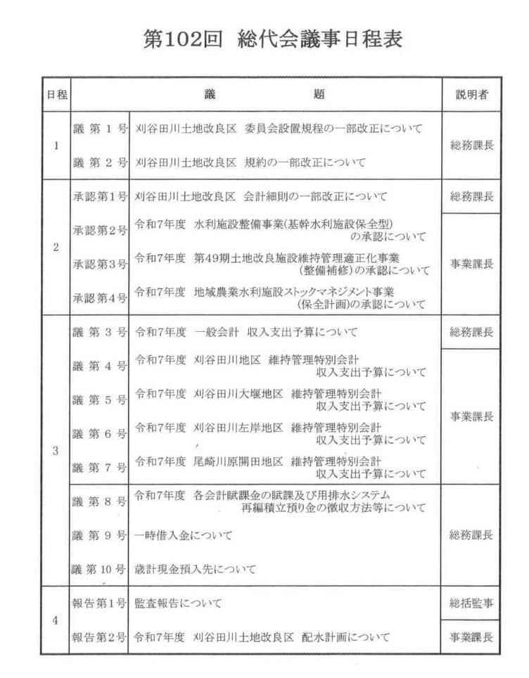 | ■開催日:令和7年3月21日(金) ■開会時間:午後3時 ■開催場所:刈谷田川土地改良区会議室 |