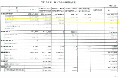 | 令和3年度末時点で転用決済金は合計237,001,199円です。 | ||||||||||||||